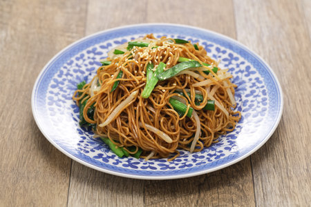 Le chow mein est un plat de la région de Canton composé de nouilles de blé sautées, de cébettes et de légumes, le tout lié par un mélange de sauces